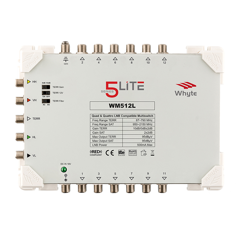 The Whyte Series 5 Lite 12-Way Standalone Multiswitch is designed for domestic installations as well as for small apartment blocks and, it is compatible with both QUAD and QUATTRO LNB’s.