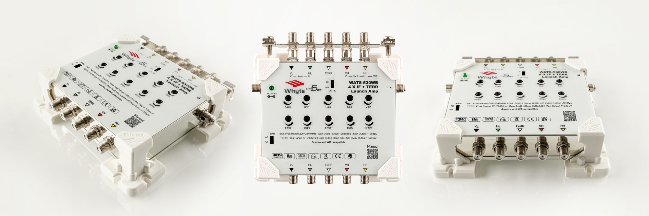 The Whyte Series 5 WB Launch Amplifier is a 5 wire Satellite and Terrestrial IRS Launch Amplifier with the option of Quattro or Dual Wideband LNB input.