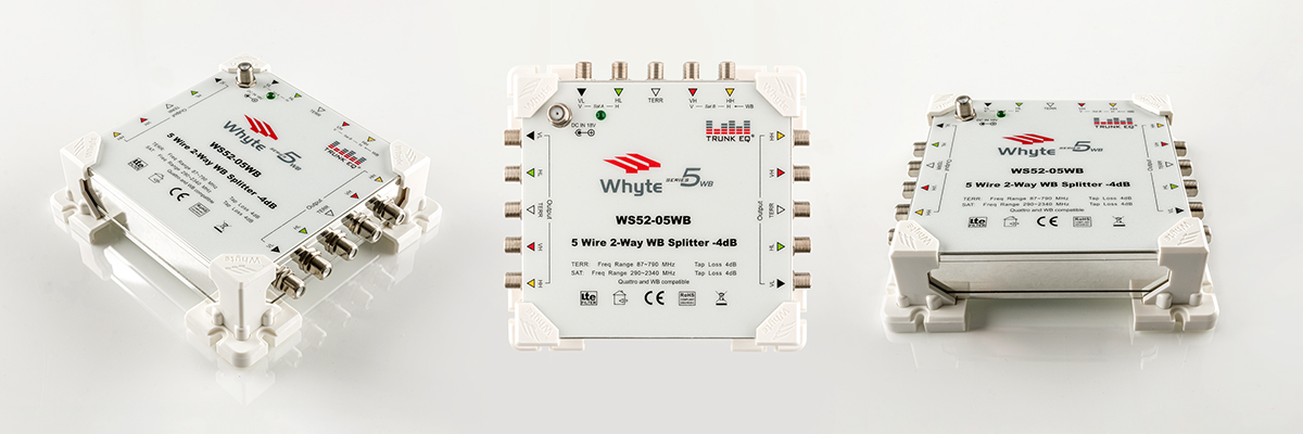 The Whyte Series 5 WB WS52-05WB 2-Way Splitter also features our intelligent equalisation technology for flat trunk output. Ideal for splitting Quattro or Wideband IRS distribution feeds.