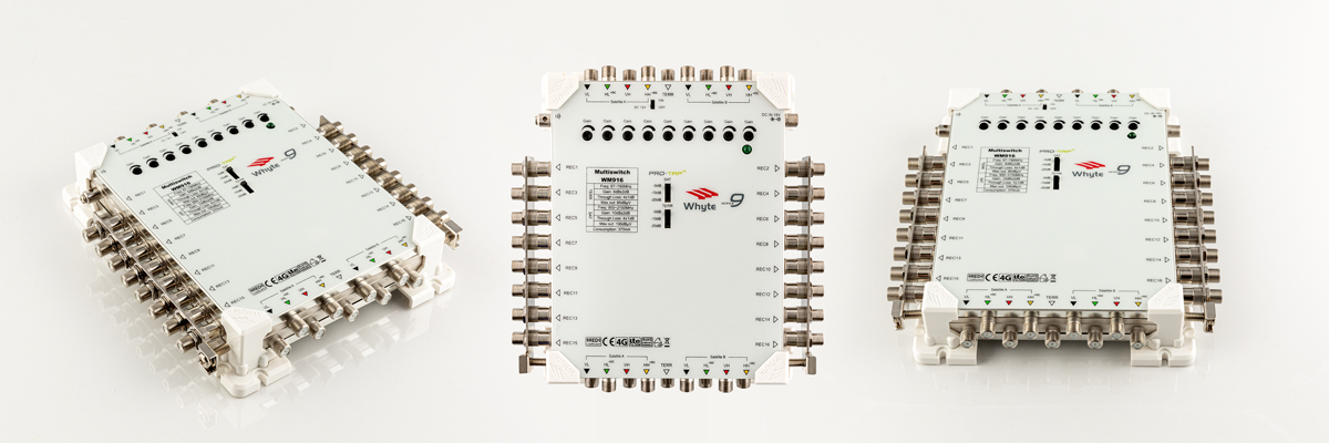 The Series 9 16-Way Standalone Multiswitch is a 9 wire line powered Cascading Multiswitch. It comes fitted with Pro-Tap Technology which enables the installer to easily select input tap losses of 0 -10 or -20dB whilst maintaining a trunk through loss of only 4dB.