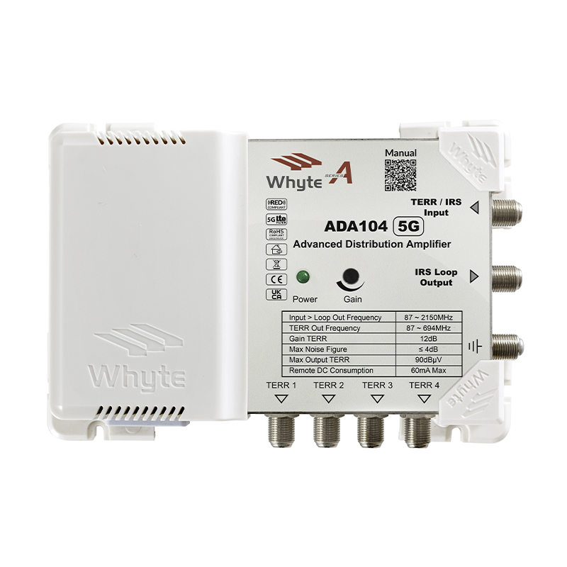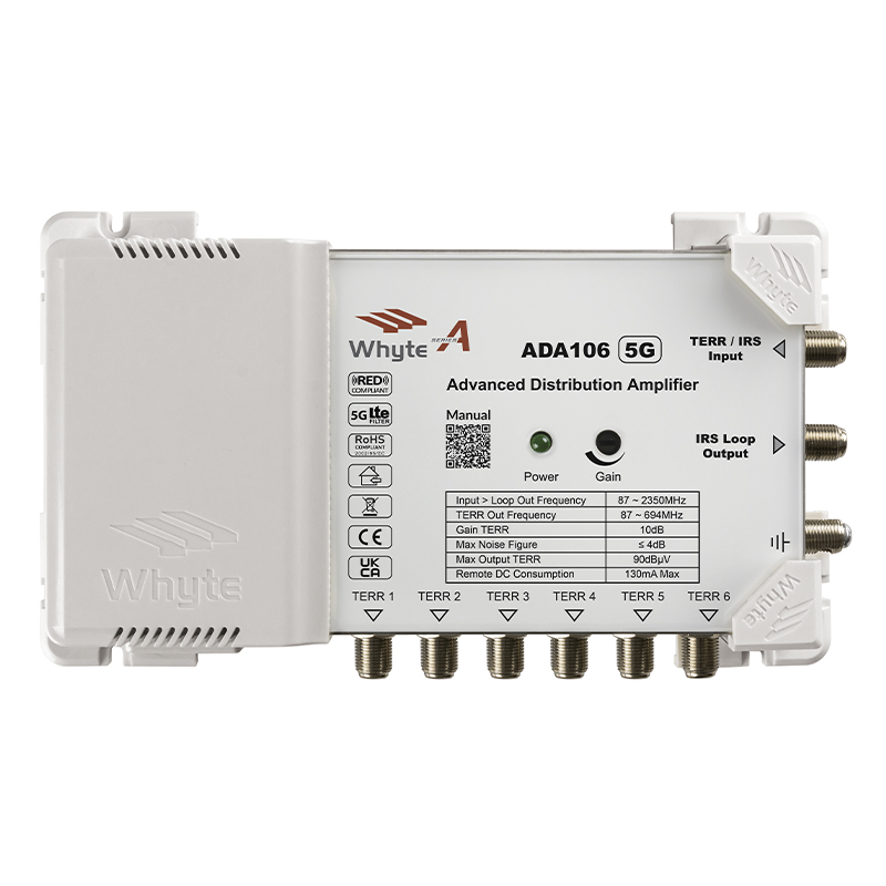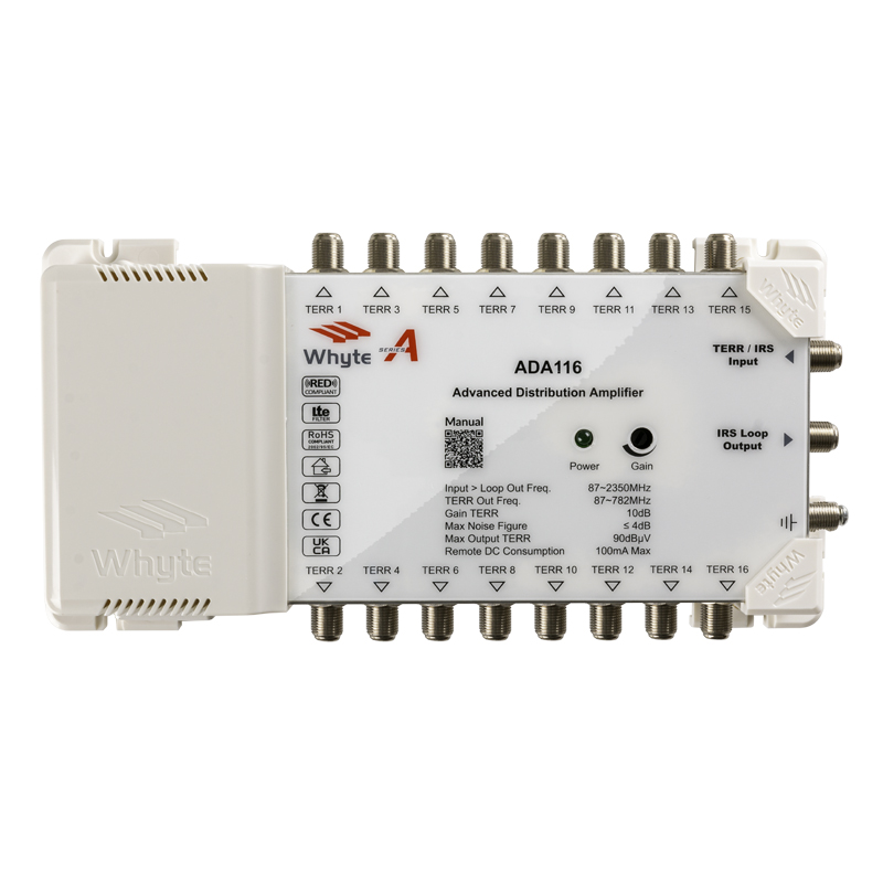 The Whyte Series A Distribution Amplifiers – 2-Way | 4-Way | 6-Way | 8-Way | 12-Way | 16-Way. The IRS Loop-through can also be used to cascade multiple units to create large scale Master Antenna TV systems (MATV). When used as a standard TERR and RADIO Distribution Amplifier, the Whyte range of Distribution Amplifiers offer a professional, low noise, high gain solution.
