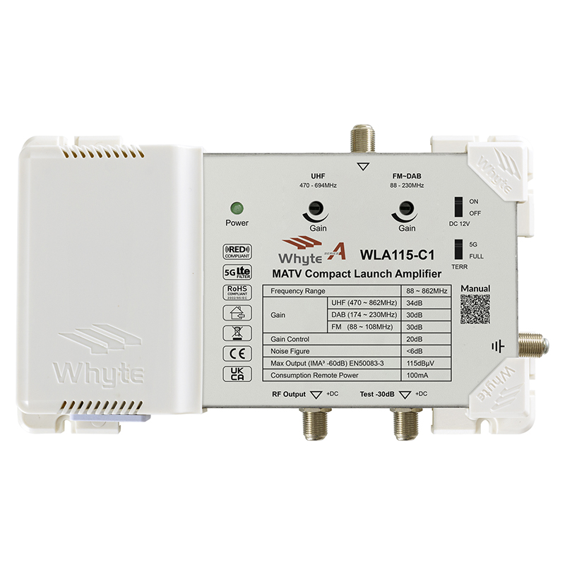 The Whyte Series A WLA115-C1 and WLA115-C3 are compact, energy efficient, high performance MATV Launch Amplifiers designed for use in extensive MATV distribution systems for Terrestrial, DAB and FM signals.