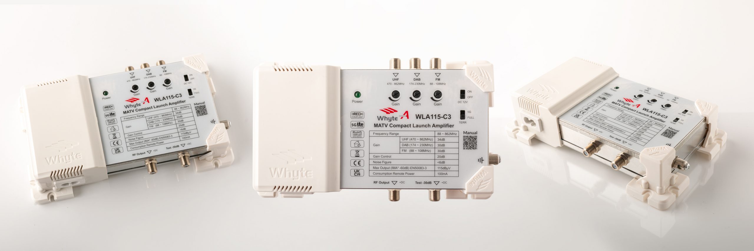 The Whyte Series A – WLA115-C3 are compact, energy efficient, high performance MATV Launch Amplifiers. Ideal for TERR only distribution situations such as residential homes, hotels, and student accommodations. The selectable Class 1 5G LTE filter enables the rejection of unwanted interferers from mobile data services.