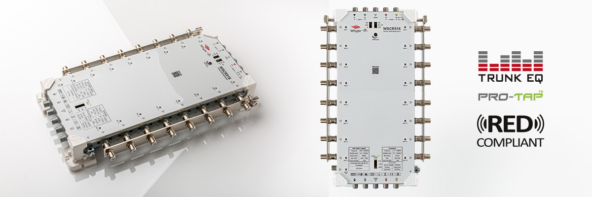 Advanced Cascadable 16 way dSCR Multiswitches enable seamless integration with conventional IRS Systems due to extremely low power consumption, low loss passive trunks and high gain Terrestrial, make the new Series D range from Whyte the most versatile and easy to install dSCR Multiswitch range available. Each subscriber output provides SkyQ, Legacy, TV and Radio. Satellite subscriber signal levels in both Legacy and dSCR mode are automatically set to 85dBμV. Terrestrial signal levels are controlled via a manual Gain Control knob and a selectable Protean Tap which permits a wide range of TERR input signal levels from 50 to 108dBμV. The reception of 2 satellites can easily be achieved by utilising 2 Wideband LNB’s and switching the unit to Wideband LNB mode. The unit can be powered directly via the DC input port or be remotely powered via the trunk lines.