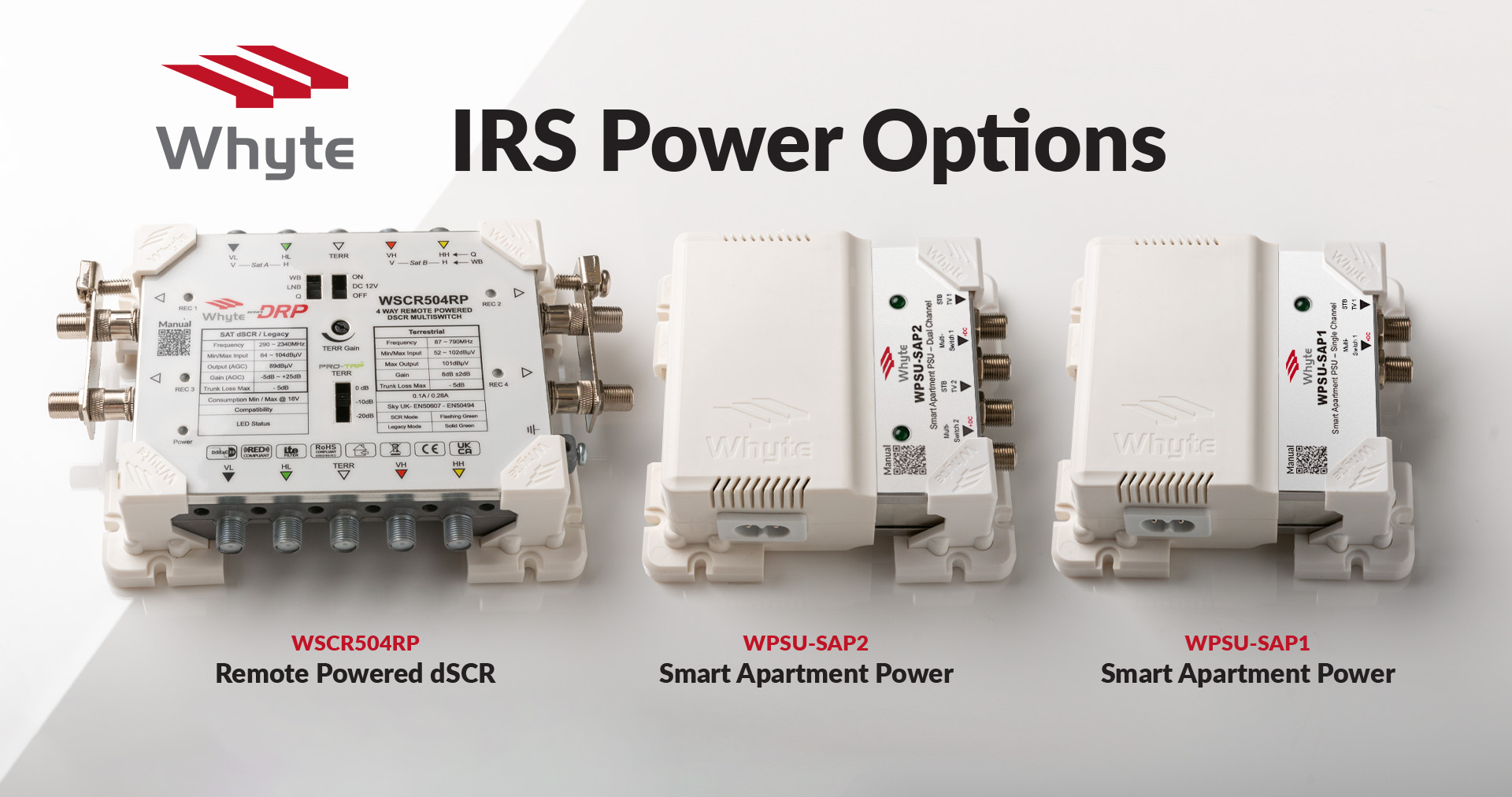 The world’s first Smart Apartment Power supply developed by Whyte Technologies provides the ideal solution, being legacy satellite, dSCR and terrestrial compatible with seamless operation.