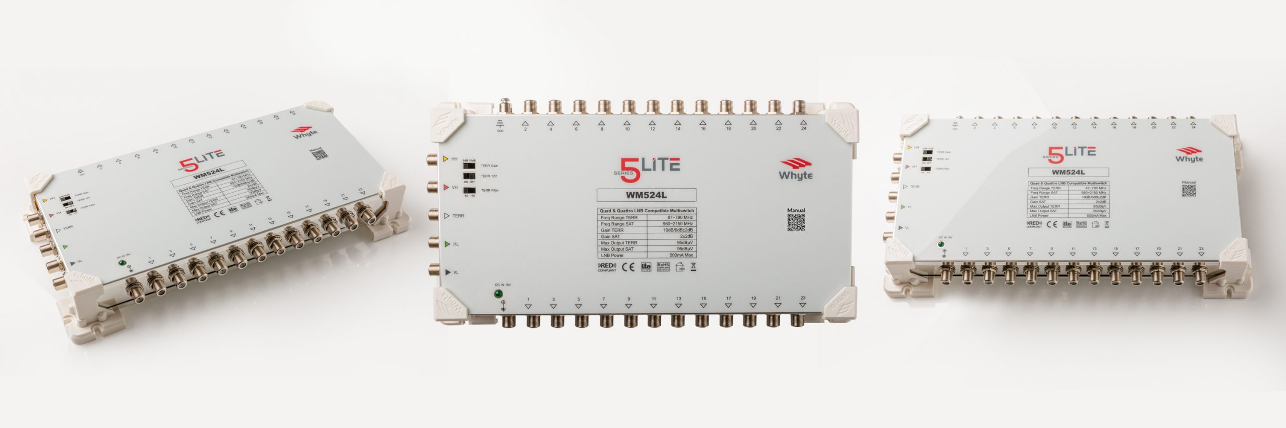 The Whyte Series 5 Lite 24-Way Standalone Multiswitch is designed for domestic installations as well as for small apartment blocks and, it is compatible with both QUAD and QUATTRO LNB’s.
