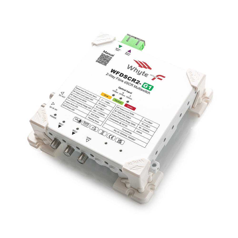 The optical dSCR multiswitch range from Whyte provides access to Sky Q, Legacy, TV and Radio services. The dedicated TERR Output can be amplified and/or split to provide additional TERR sources to bedrooms. Designed for use with the Whyte Optical product range these are typically used as home terminal units within a fibre to the home (FTTH) IRS system.